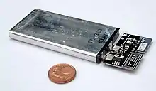 تبين الصورة مركم الليثيوم المبلمر ذو جهد 6و3 فولت، وهو يثبت عادة في غطاء الهاتف. وبرفع الغطاء البلاستيك تبدو تحتها دارة حفظ المركم ضد الاستخدام الزائد عن المعدل.