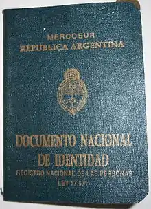 قبل إدخال DNI في عام 1968, كان للنساء ("كتيب مدني") ("Libreta cívica")؛ وللرجال ("كتيب التسجيل العسكري") ("Libreta de enrolamiento").[4][5] لسنوات عديدة، صدر DNI ككتيب أخضر صغير (يدعى libreta). في عام 2009, تم تجديد وتحديث DNI ؛ والكتيبات (الزرقاء الآن) صدرت مع بطاقة هوية في وقت واحد. منذ عام 2012, يتم إصدار DNI فقط في تنسيق البطاقة. مطلوب بطاقة DNI الجديدة للحصول على جواز السفر الأرجنتيني الإلكتروني الجديد.