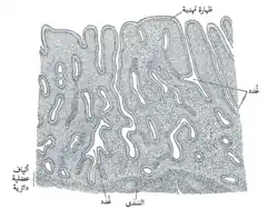 مقطع رأسي في الغشاء المخاطي لرحم أنثى الإنسان