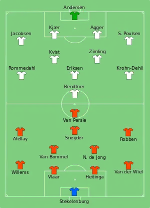 |CitationClass=تم تجاهله (مساعدة) - "Tactical Line-up – Group B – Netherlands-Denmark" (PDF). UEFA.com. Union of European Football Associations. 9 June 2012. مؤرشف من الأصل (PDF) في 12 مايو 2014. اطلع عليه بتاريخ 09 يونيو 2012. الوسيط