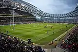 أنهى افتتاح ملعب أفيفا في مايو 2010 الترتيب مع الاتحاد الغالي لألعاب القوى (GAA) الذي سمح للاتحاد الأيرلندي للرجبي لكرة القدم باستخدام ملعب GAA الرئيسي، كروك بارك، في مبارياته الدولية، وكان هذا الترتيب ضروريًا بعد إغلاق وهدم ملعب لانسداون رود عام 2007 وبناء ملعب أفيفا على موقعه.