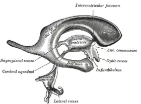 صورة توضح بطينات الدماغ وأجزاء البطين الجانبي