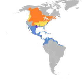 يتواجد في جميع أنحاء شمال ووسط أمريكا الشمالية ما عدا ألاسكا وهو من الطيور المهاجرة حيث يهاجر في أسراب نحو أمريكا الوسطى والشمالية.