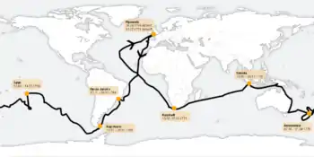 - 13 يوليو 1771، بعد سنتين وأحد عشر شهرا، تدخل الرحلة وتحت في بليموث بقيادة جيمس كوك.