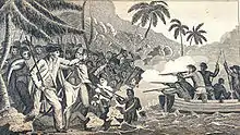 - في هذا الوقت قرر كوك النزول من السفن وأخذ القارب، لكن السكان المحليين تكاثروا وهجموا على السفينتين، فأمر كوك الطاقم بالعودة إلى البعثة، وعندما كان كوك يصعد السفينة، أستهدف من قبل السكان وقتل في ضهره هو وأربعة من جنوده.