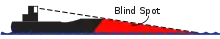 توجد البقعة العمياء أمام القارب[2]، وقد يصل طولها لمئات الأمتار امام السفن الكبيرة. يتم التغلب عليها باستخدام كاميرات توضع امام السفينة.