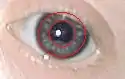 Magnification. بقع بروشفيلد هي البقع بين الدوائر الحمراء الداخلية والخارجية.