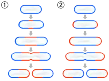 يبدو أن هناك طريقتين لتكوين الجدار الخلوي للبكتيريا العصوية عند الانقسام الثنائي: