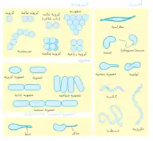 رسم يوضح الأشكال المختلفة للبكتيريا