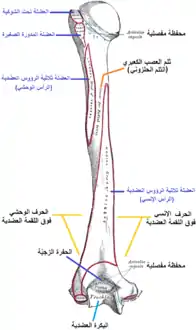 ![]() عرض خلفي للجزء البعيد من عظم العضد الأيسر عرض خلفي للجزء البعيد من عظم العضد الأيسر | |