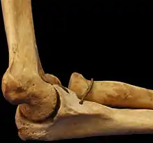![]() عرض أمامي للجزء البعيد من عظم العضد الأيسر | |