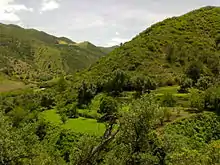 • الغطاء النباتي في المنطقة ينتمي إلى النموذج المتوسطي الجبلي;ويمكن تحديد اربعة انواع من الاغطية النباتية′