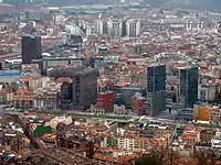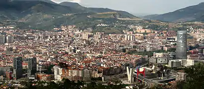 بني متحف غوغنهايم في بلباو في مكان أحواض بناء السفن التي كانت تحتل مساحة واسعة من النهر، وأصبح المتحف من المعالم السياحية للمدينة . وتم تطهير النهر، والورش القديمة على الشاطيء وأصبحت منطقة سكنية مرموقة . وقد شجع مدينة المهندسين المعماريين الدولية بناء المشاريع العمرانية . ويحتوي على الجسر والمطار التصميم الفريد سانتياغو كالاترافا، وبرج للمكاتب من تصميم سيزار بيلي، ومركز للمؤتمرات وقاعات الحفلات الموسيقية التي وضعتها وزارة سوريانو المهندسين المعماريين وبالاسيوس.