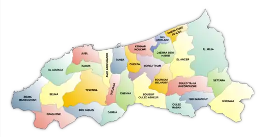 قائمة البلديات في ولاية جيجل وعدد سكان كل بلدية ( حسب احصاء 2008 ).