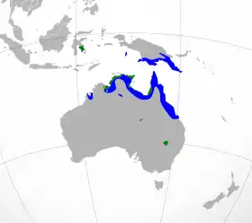 ![]() Distribution. Green: year-round breeding, Blue: nonbreeding. | |