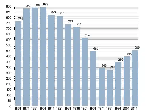 في سنة 1861 بلغ عدد السكان 764 نسمة، وتطور العدد ليصل في سنة 2011 لـ 505 نسمة.