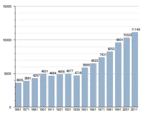 في سنة 1861 بلغ عدد السكان 3٬605 نسمة، وتطور العدد ليصل في سنة 2011 لـ 11٬149 نسمة.