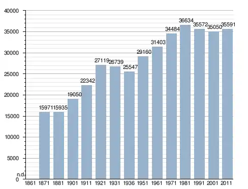 في سنة 1871 بلغ عدد السكان 15٬971 نسمة، وتطور العدد ليصل في سنة 2011 لـ 35٬591 نسمة.