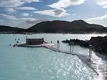 بلو لاغون (بالإنجليزية: Blue Lagoon ، وبالإيسلندية: Bláa lónið ) هي بحيرة طبيعية ساخنة في آيسلندا يزورها أناس كثيرون راغبون في الاستجمام الصحي وسياح كثيرون ليتمتعون بما حولها من مناطق طبيعية خلابة. كما إنها للاستجمام الصحي حيث يقوم أطباء بعلاج المرضى بالعلاج الطبيعي، والرعاية الصحية النفسية والألعاب الجسمانية .[1] تقع بحيرة بلو لاغون الصحية الطبيعية في حقل حمم بركانية باردة في "غريندافيك" على شبه جزيرة "ريكيانيس" في جنوب إيسلندا. وتبعد المصحة الطبيعية بلو لاغون Bláa lónið نحو 20 كيلومتر عن مطار كيفلافيك الدولي ونحو 39 كيلومتر من العاصمة ريكيافيك. أي يمكن الوصول إليها بالسيارة خلال 20 دقيقة من كيفلافيك أو نحو 50 دقيقة من ريكيافيك.