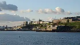 في عام 1403 كانت المدينة محتلة وتم إحراقها من قبل الفرنسيون، وخاصة البريطانيون، وفي الواقع كانت المدينة غالبا ماتكون هدفا لأعداء عبر القناة، وخصوصا خلال حرب المائة عام. بليموث كان قلعة مصب ساتون بركة، وكذلك عبر الحواجز على ساحل معزقه، ولكن كل هذه إما هدم أو يبنى عليها لاحقا تحصينات تعود إلى عصور تيودور وستيوارت.