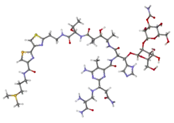 بليومايسين[2] أو بليوميسين[2] (بالإنجليزية: Bleomycin) هو دواء يستخدم لعلاج السرطان.[3] ويتضمن ذلك سرطان هودجكنز للغدد اللمفاوية، وسرطان اللاهودجكين، وسرطان كل من الخصية، والمبيض، وعنق الرحم وغيرهما.[3] عادة ما يستخدم مع أدوية أخرى مضادة للسرطان،[3] ويمكن أن يُعطى للمريض عن طريق الوريد أو عن طريق الحقن في العضلة أو الحقن تحت الجلد.[3] ويمكن أيضًا أن يعطى داخل الصدر للمساعدة في منع تجمع السوائل حول الرئة التي يسببها السرطان. بالرغم من أن بودرةالتلكتعد علاجاً أفضل لمنع تجمع تلك السوائل.[3][4]