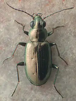 البمبديون (الاسم العلمي: Bembidion) هو جنس من الحشرات يتبع فصيلة الخنافس الأرضية من رتبة غمديات الأجنحة.[2] وهو أكبر جنس من الخنافس في الخنافس الأرضية من حيث عدد الأنواع. وكانت هناك العديد من المحاولات لتقسيمها إلى أجناس أصغر، من قِبَل العلماء ولكن أيا منهم لم يلق قبولا عاما. جميع الأنواع صغيرة (أقل من 7.5 ملم) وتتحرك بسرعة كبيرة. معظمهم يعيش بالقرب من الماء.