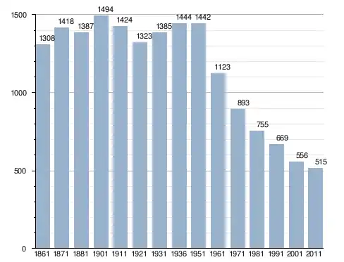 في سنة 1861 بلغ عدد السكان 1٬308 نسمة، وتطور العدد ليصل في سنة 2011 لـ 515 نسمة.