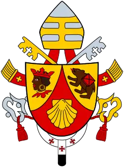 - انظر الشرح الكامل لدرع بابوية بندكت السادس عشر من Coat of Arms of His Holiness Benedict XVI، الموقع الرسمي للفاتيكان، 26 تشرين أول 2010. نسخة محفوظة 29 يوليو 2013 على موقع واي باك مشين. [وصلة مكسورة]