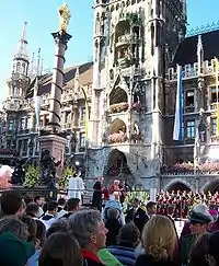قبيل أول ظهور له من شرفة كاتدرائية القديس بطرس بعد أن أصبح البابا،[43][44] أعلن جورج استيفيس، الكاردينال المسؤول عن الاحتفالات والتشريفات في الفاتيكان عن انتخاب “الحبر الأعظم”، وحيّا الحشود في ساحة القديس بطرس باللغات الإنجليزية والفرنسية والإيطالية والإسبانية والألمانية قبل الشروع وفق تقليد الكنيسة الكاثوليكية باللغة اللاتينية بقراءة مرسوم انتخاب البابا المعروف تقليديًا باسم Papam Habemus والتي تعني في اللغة العربية: أصبح لدينا بابا.[45]