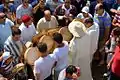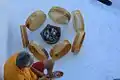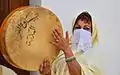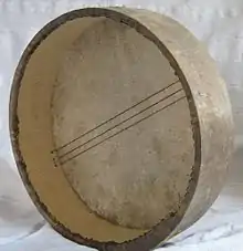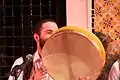 - النقر على حاشيته بالبنصر والخنصر والوسطى من اليد: وبحدث ذلك رنات متوسطة الحدة.[3]