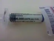 بنزيل بنسيللين و يعرف ايضا باسم (بنسيللين جي) هو مضاد حيوي من مركبات بيتا لاكتام ينتجه فطر المِكْنَسِيَّةُ المُعَيَّنَة بنسيليوم نوتاتوم (Penicillium notatum ),وهو مضاد للكائنات الدقيقة مثل أنواع مثل المكورات العقدية، النيسرية، المستدمية النزلية، الجراثيم اللاهوائية والملتويات. بعد زرقه في العضل تبلغ تراكيزه في البلازما ذروتها خلال 15-30 دقيقة، يتوزع بصورة واسعة عبر الجسم. لا يدخل السائل الشوكي الدماغي بسهولة إلا في حال التهاب السحايا، عمره النصفي في البلازما 30-45 دقيقة ويفرغ بصورة رئيسية في البول.[2]