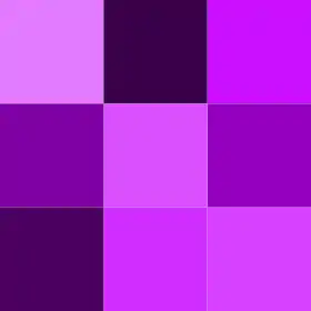 الثاني: لون بنفسجي قد يشير إلى وجود تدرج أرجواني، وهو خليط من ضوئين أحمر وأزرق، وليس لوانًا طيفيًا (Spectral color) (انظر مناقشة للتمييز بين البنفسجي والأرجواني). اللون البنفسجي الطيفي هو خارج السلسلة اللونية الكاملة للفضاء اللوني RGB، وعلى الرغم من أنه يمكن أن يقترب من اللون المسمى بنفسجي كهربائي (لون)، فإنه لا يمكن أن نستنسخه تماما على شاشة الحاسوب.