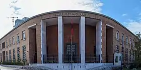 مبنى بنك ألبانيا في ميدان سكاندربغ في تيرانا.