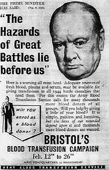 في عام 1937 برنار فانتوس، مدير العلاجات في مستشفى مقاطعة كوك في شيكاغو، أنشأ أول مستشفى بنك دم في الولايات المتحدة.[10] من أجل إنشاء مختبر مستشفى لتبريد وتخزين و حفظ دم المتبرعين، نشأت فانتوس مصطلح " بنك الدم ". في غضون بضع سنوات، تم تأسيس مصارف الدم في المستشفيات والمجتمع في جميع أنحاء الولايات المتحدة.[11] انتقل فريدريك دوران-جوردا إلى بريطانيا في عام 1938، وعمل مع الدكتور جانيت فوغان في الكلية الملكية الطبية للدراسات العليا في مستشفى هامرسميث لإنشاء نظام لمصارف الدم الوطنية في لندن.[12] ومع اندلاع حرب وشيكة يبحثون في عام 1938، أنشأ مكتب الحرب مستودع تخزين الدم العسكري في بريستول برئاسة ليونيل ويتبي اللذي كان مسؤول عن أربعة مستودعات كبيرة لتخزين الدم في جميع أنحاء البلاد. كانت السياسة البريطانية خلال الحرب تزويد الأفراد العسكريين بالدم من مستودعات مركزية، وعلى النقيض من النهج المتبع من قبل الأمريكيين والألمان حيث أن القوات في الجبهة الأمامية تنزف لتوفير الدم اللازم. طريقة البريطاني ثبت أن تكون أكثر نجاحا في تلبية جميع المتطلبات بشكل كاف وكان هناك أكثر من 700,000 متبرع خلال الحرب. هذا النظام تطور إلى خدمة نقل الدم الوطنية التي أنشئت في عام 1946، الخدمة الوطنية الأولى التي تم تنفيذها.[13]