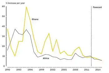 معدل تضخم غانا الاقتصادي للتغير في النسبة المئوية
