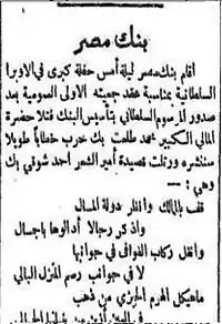 - "في مثل هذا اليوم.. تحرير عقد تأسيس بنك مصر بصفة عرفية - المصري اليوم". مؤرشف من الأصل في 3 يوليو 2018. اطلع عليه بتاريخ 27 مايو 2015. الوسيط