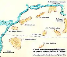 النقوش الصخرية في المنطقة تعود إلى العصر الحجري الحديث وقد أجريت عليها دراسات وتحقيقات مند العام 1863 على الرغم من قلة شهرتها مقارنة بلوحات تاسيلي الصخرية.