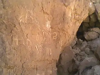 - الكتابة على مدخل غار الذيبة.