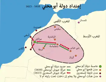 وقد سقطت مراكش في يده ليتخذها عاصمة لدولته عام 1610 م، لكن حكمه لم يدم طويلا ليسقط على يد السعديين عام 1613.