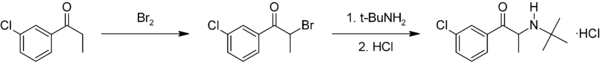 |CitationClass=تم تجاهله (مساعدة) - Perrine DM, Ross JT, Nervi SJ, Zimmerman RH (2000). "A Short, One-Pot Synthesis of Bupropion (Zyban, Wellbutrin)". Journal of Chemical Education. 77 (11): 1479. Bibcode:2000JChEd..77.1479P. doi:10.1021/ed077p1479. الوسيط