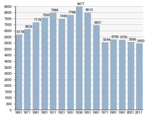 في سنة 1861 بلغ عدد السكان 6٬178 نسمة، وتطور العدد ليصل في سنة 2011 لـ 5٬450 نسمة.