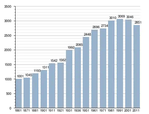 في سنة 1861 بلغ عدد السكان 1٬001 نسمة، وتطور العدد ليصل في سنة 2011 لـ 2٬851 نسمة.