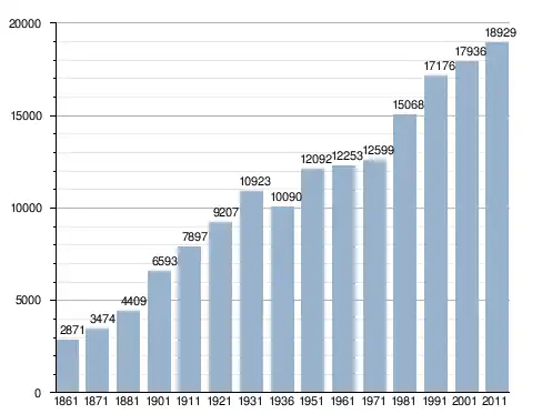 في سنة 1861 بلغ عدد السكان 2٬871 نسمة، وتطور العدد ليصل في سنة 2011 لـ 18٬929 نسمة.