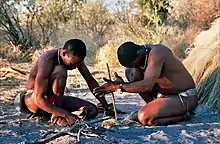 تصور أقدم اللوحات في بوتسوانا وجنوب أفريقيا الصيد والحيوانات والشخصيات البشرية ورسمها الخويزانيون (كونغ سان / بوشمن) قبل نحو عشرين ألف سنة في صحراء كالهاري.