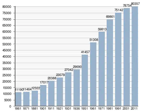 في سنة 1861 بلغ عدد السكان 11٬190 نسمة، وتطور العدد ليصل في سنة 2011 لـ 80٬357 نسمة.