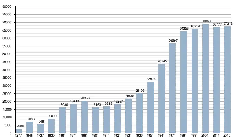 في سنة 1277 بلغ عدد السكان 2٬600 نسمة، وتطور العدد ليصل في سنة 2015 لـ 67٬348 نسمة.