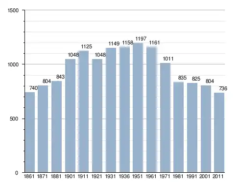 في سنة 1861 بلغ عدد السكان 740 نسمة، وتطور العدد ليصل في سنة 2011 لـ 736 نسمة.