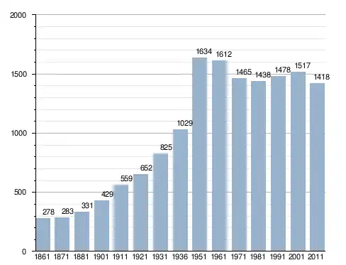 في سنة 1861 بلغ عدد السكان 278 نسمة، وتطور العدد ليصل في سنة 2011 لـ 1٬418 نسمة.