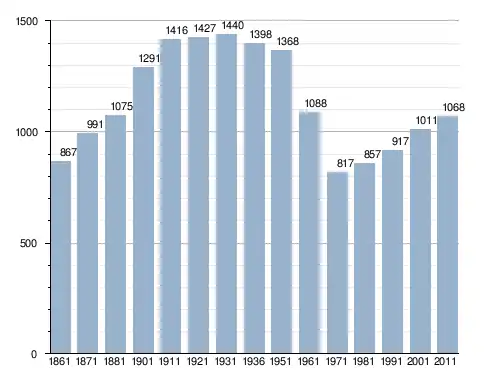 في سنة 1861 بلغ عدد السكان 867 نسمة، وتطور العدد ليصل في سنة 2011 لـ 1٬068 نسمة.