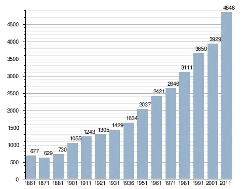 في سنة 1861 بلغ عدد السكان 677 نسمة، وتطور العدد ليصل في سنة 2011 لـ 4٬846 نسمة.